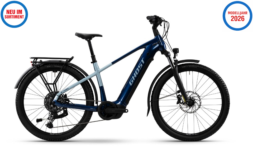 Mit MIK-Systemgepäckträger (bis 27 kg), Schutzblechen und leistungsstarker Beleuchtung ist dieses E-Trekkingbike perfekt für Alltag und Tour ausgestattet.