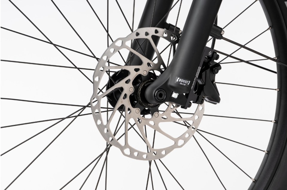 Für maximale Sicherheit sorgt die leistungsstarke Shimano Deore BR-MT420 4-Kolben Bremsanlage mit großen 203 mm Bremsscheiben vorne und hinten. Die robuste Shimano CUES 10-Gang Schaltung mit 11–48T Kassette bietet präzise Gangwechsel und hohe Langlebigkeit. Komfort liefert die Suntour XCM34 Boost Federgabel mit 100 mm Federweg sowie eine integrierte Limotec Dropperpost mit 125 mm Hub.
